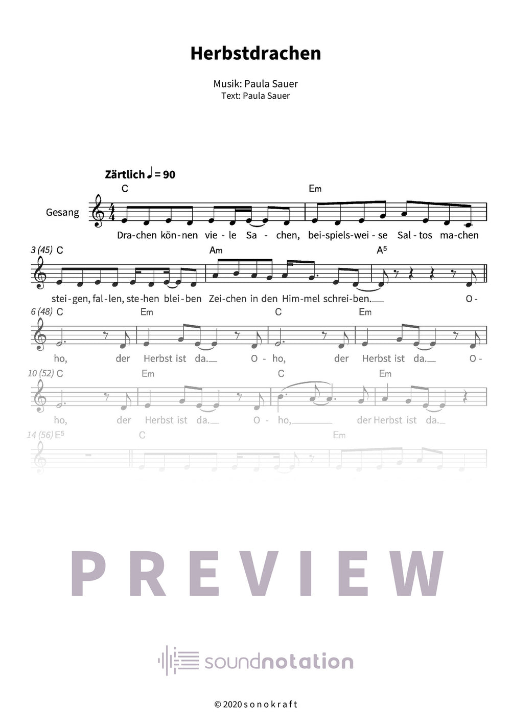 „Herbstdrachen“ – Paula Sauers buntes Herbst-Kinderlied aus „Wolkenbilder“: Melodie, Lyrics & Akkorde. Fröhliche Drachenflüge zum Mitsingen – Ohrwurm für Klein & Groß!