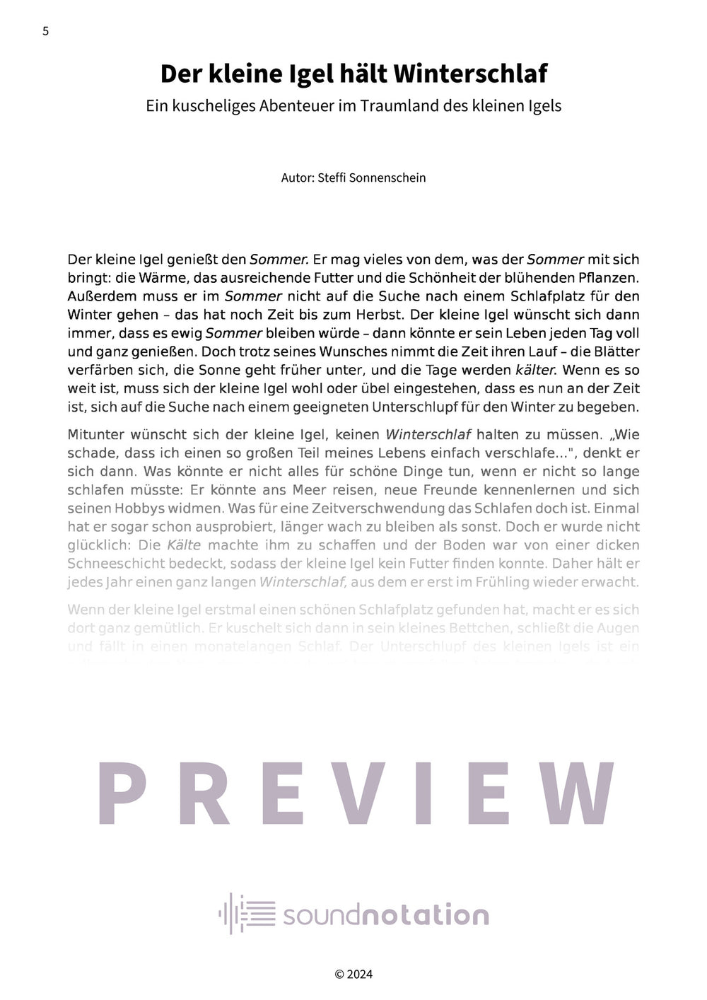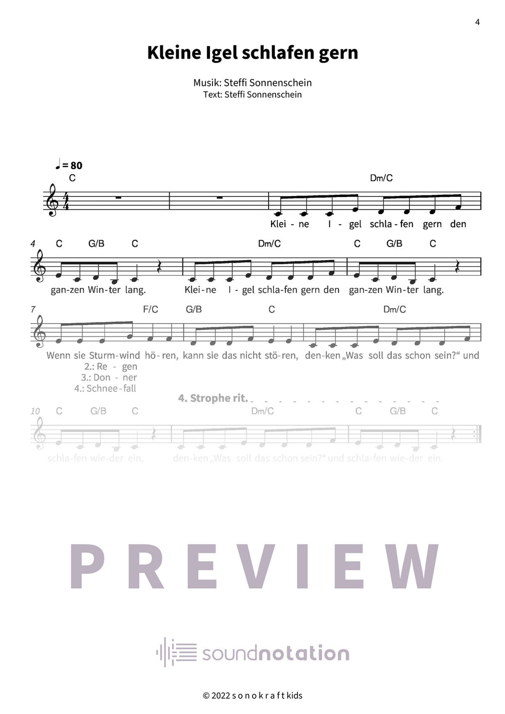 „Kleine Igel schlafen gern“ – Steffi Sonnenscheins kuscheliges Einschlaflied: Gemütlicher Winterschlaf für kleine Träumer! Leichtes Leadsheet C-Dur mit Text.