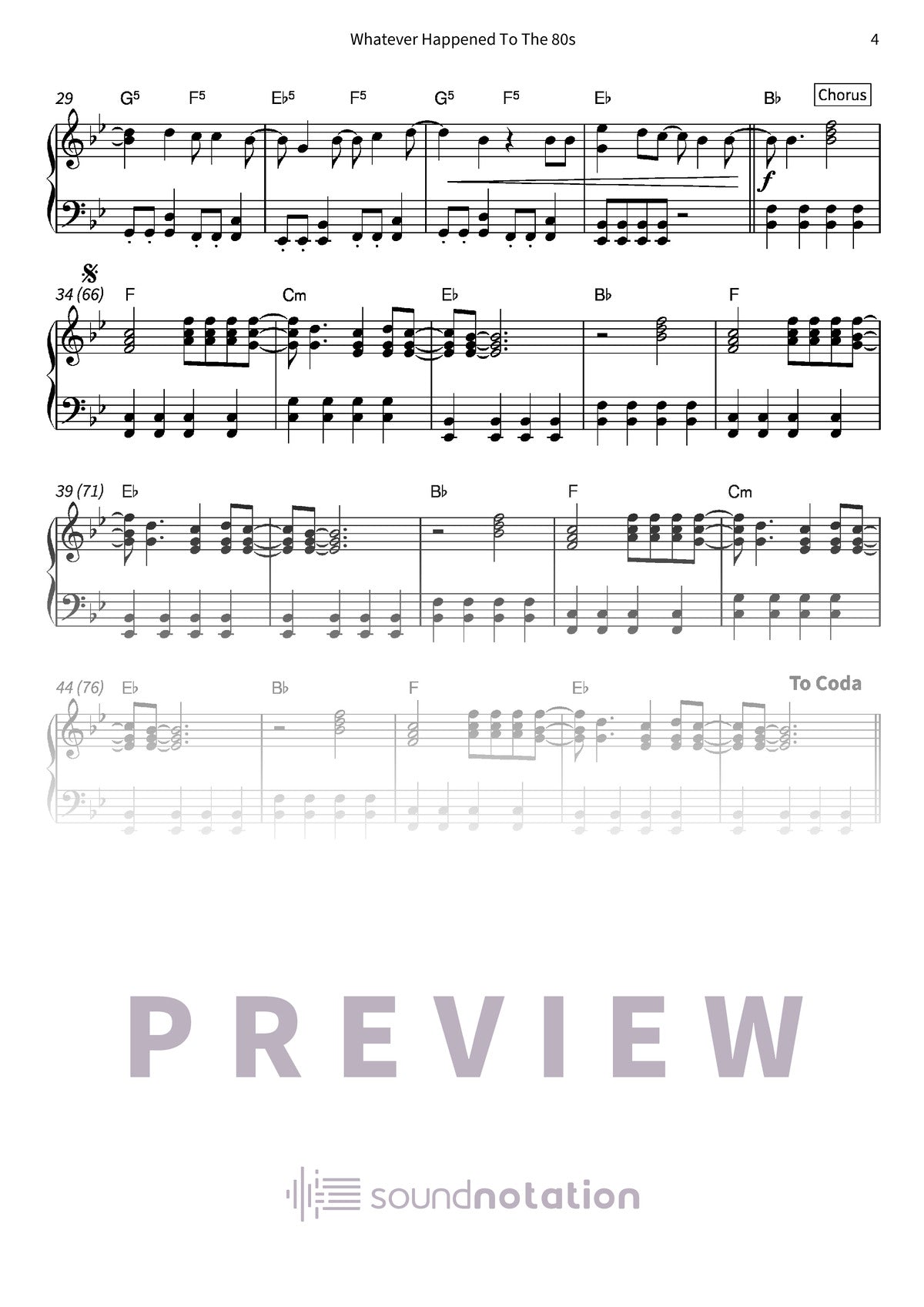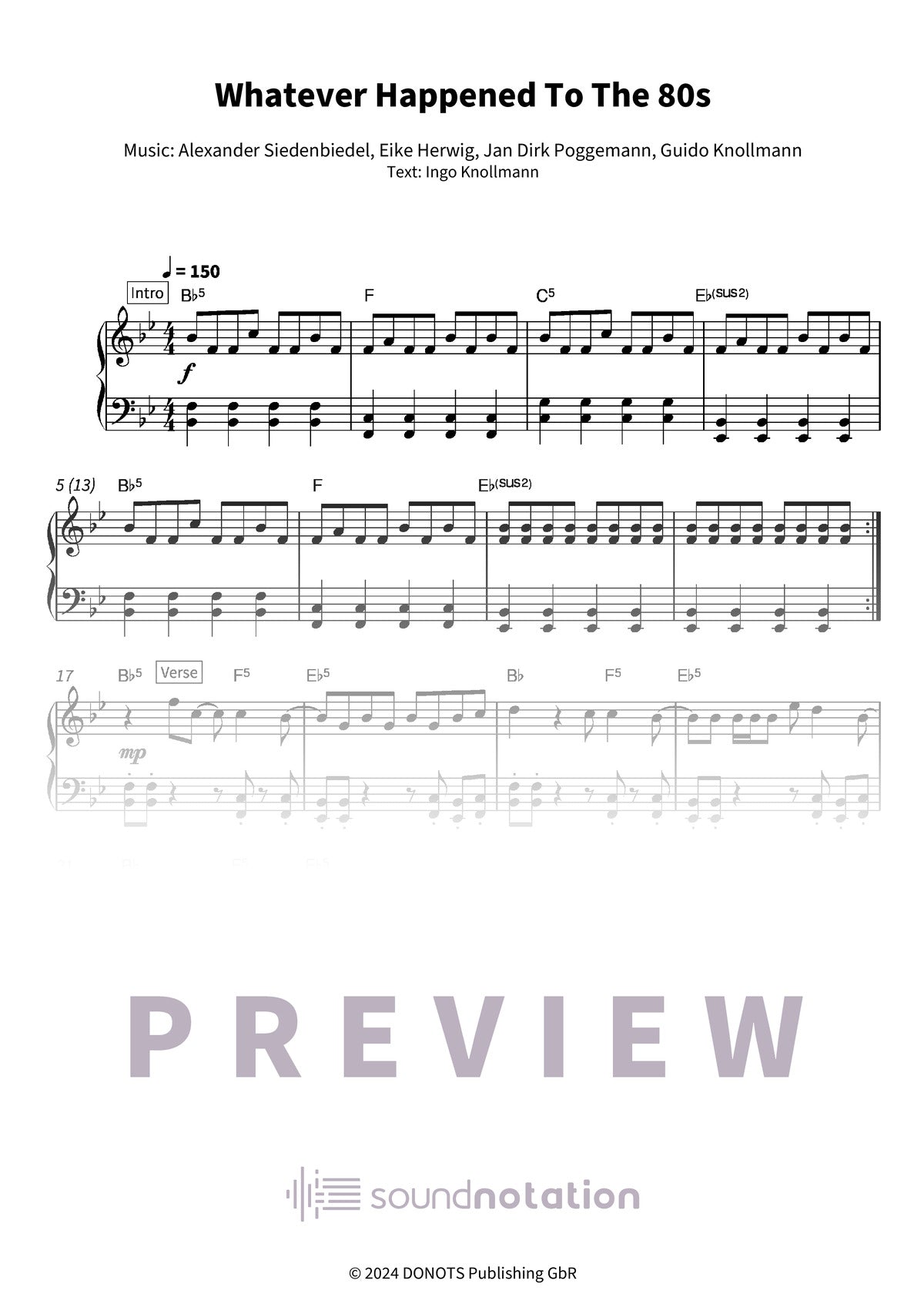 "Whatever Happened To The 80s" – Donots is a punchy, melody-forward rock tune that brings that straight-ahead, no-fuss energy back to the piano in a way that feels honest and playable. Set in Bb major and moving in 4/4, it sits well under the hands once the groove locks in, with enough bite in the rhythm to keep intermediate players engaged without turning it into a workout. At about four minutes, it’s long enough to build momentum and shape a real arc, whether you’re sight-reading, tightening details slowly, or pulling it out for a crowd-pleasing run-through. Chord symbols are included, which makes it easy to reharmonize lightly, simplify voicings, or back up a singer in rehearsal. An edition you can rely on.