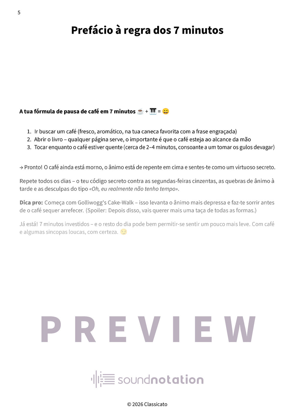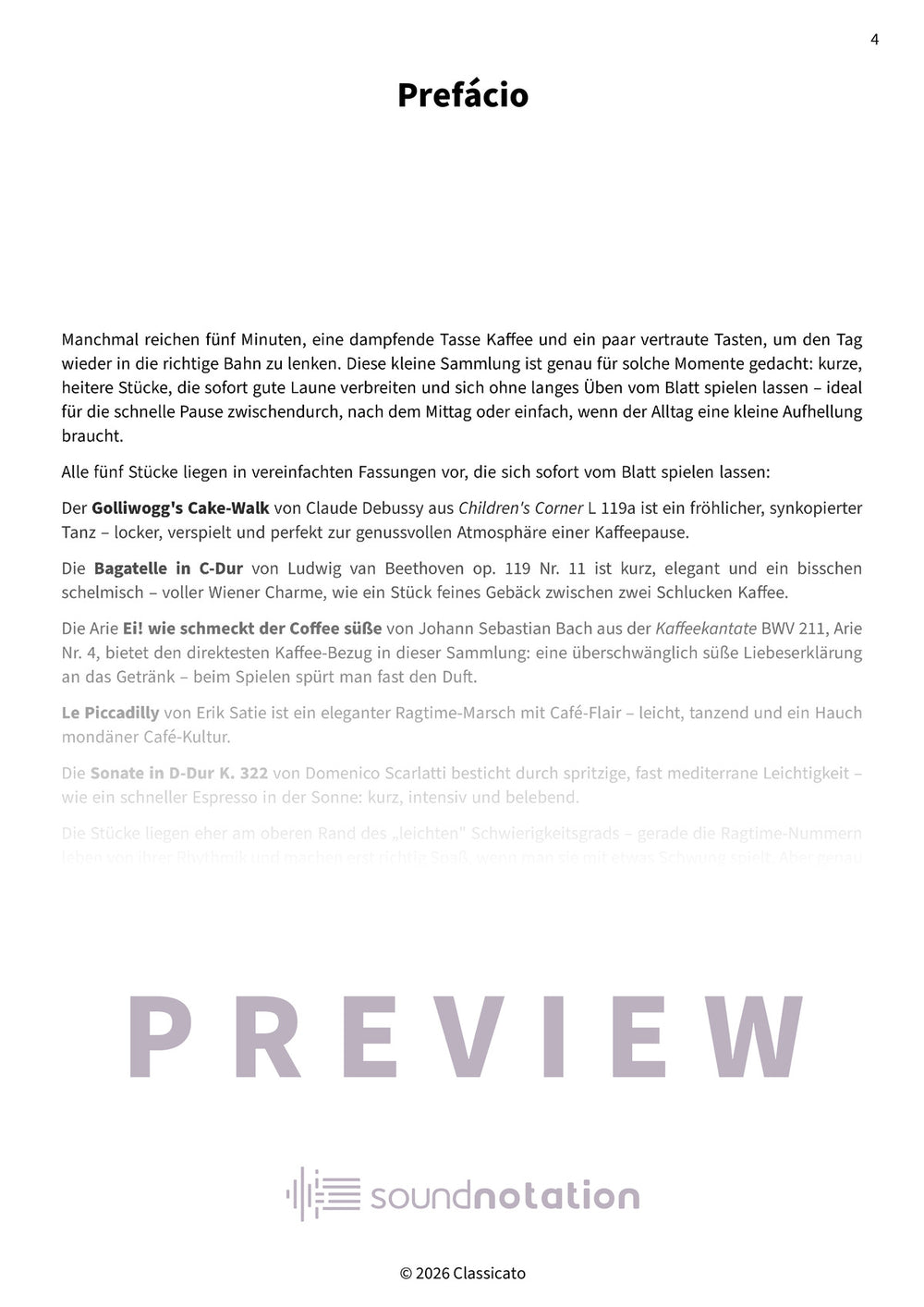 Cinco minutos, uma xícara de café, cinco obras-primas de Debussy a Scarlatti – tocáveis instantaneamente. A pausa musical perfeita que salva cada dia.