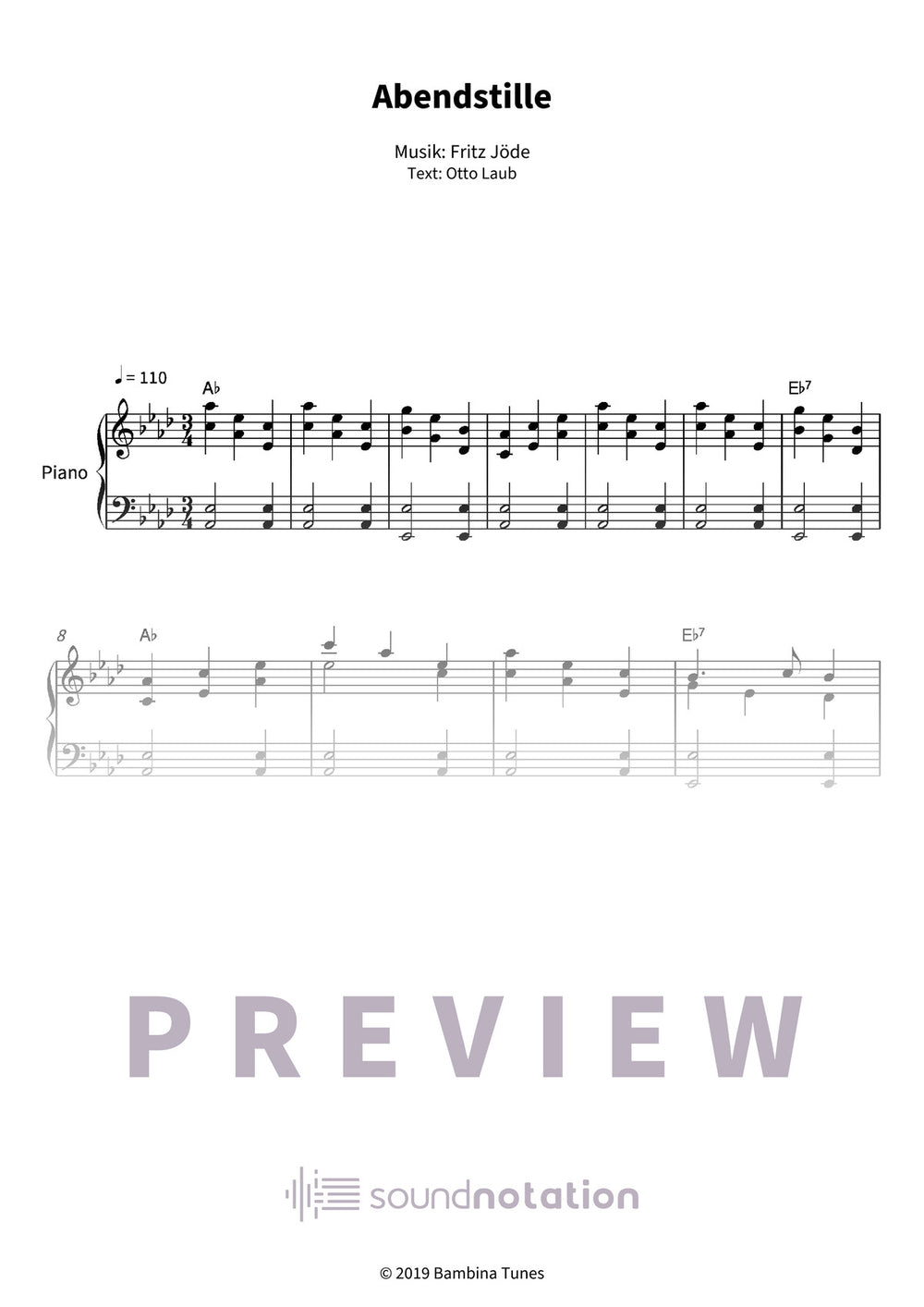 Dieses Notenheft enthält die Originalnoten zum Wiegenlied "Abendstille" für Klavier. Leichter Schwierigkeitsgrad in As-Dur.