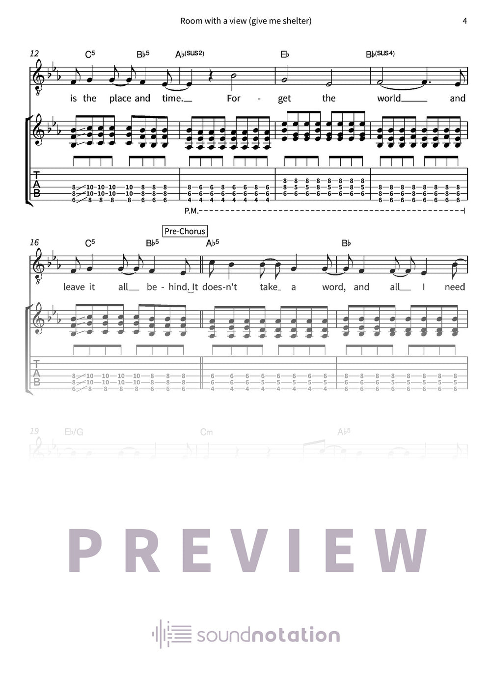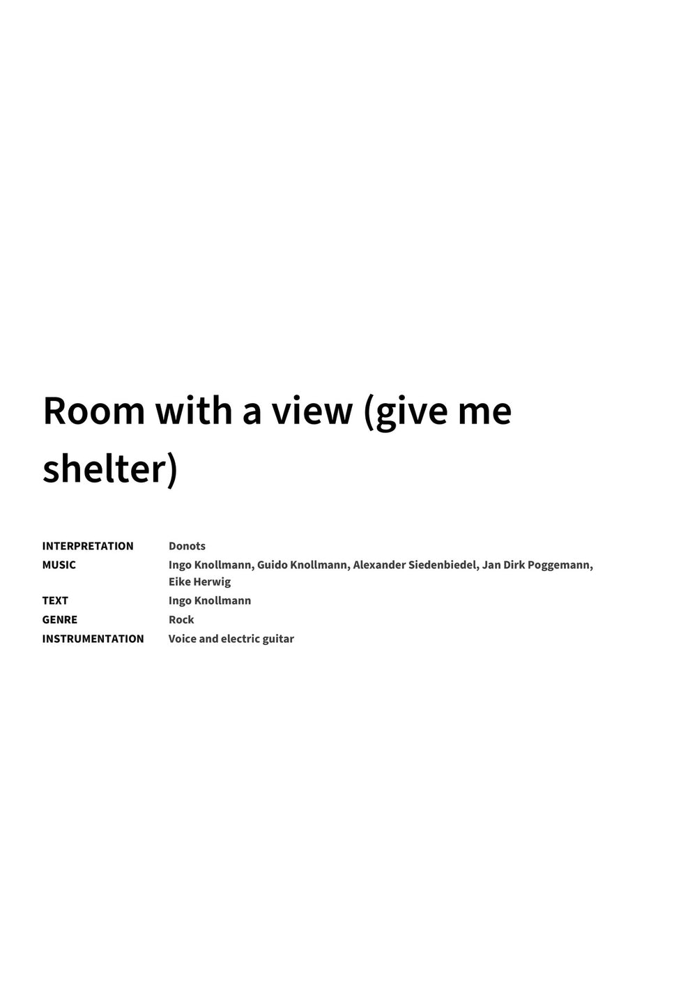"Room with a view (give me shelter)" – Donots: a clear, practical voice and electric guitar arrangement with lyrics and chord symbols, built for tight verses and big choruses.